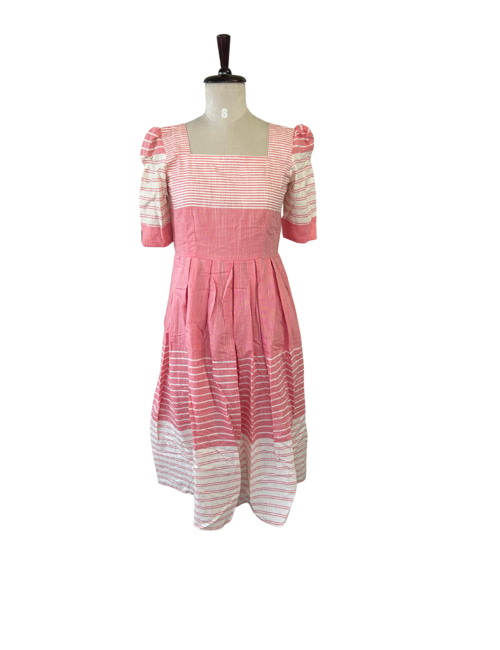 Blush Pink Stripped Cotton Midi Dress With Back Lace