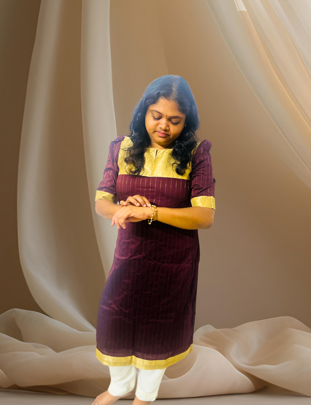 Brown Gold Silk Cotton Kurta With Tissue Detailing